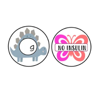 You can choose a "No Insulin" label for foods your child can eat any time without an insulin dose. Or choose a "G" label, which you can write on with a permanent or whiteboard marker, to indicate the carbohydrates in the food for an insulin dose.